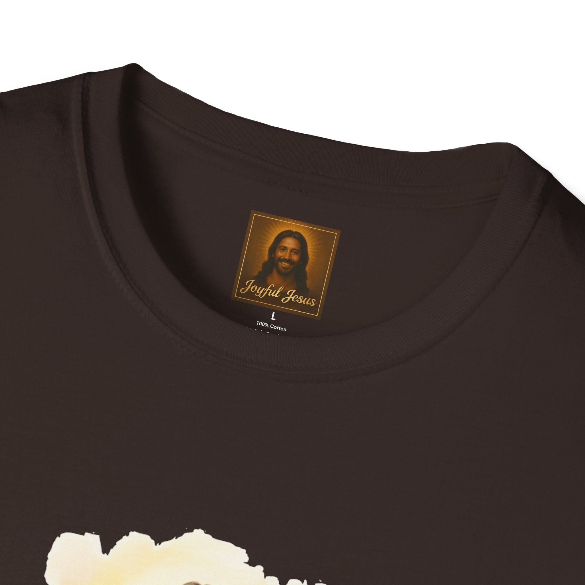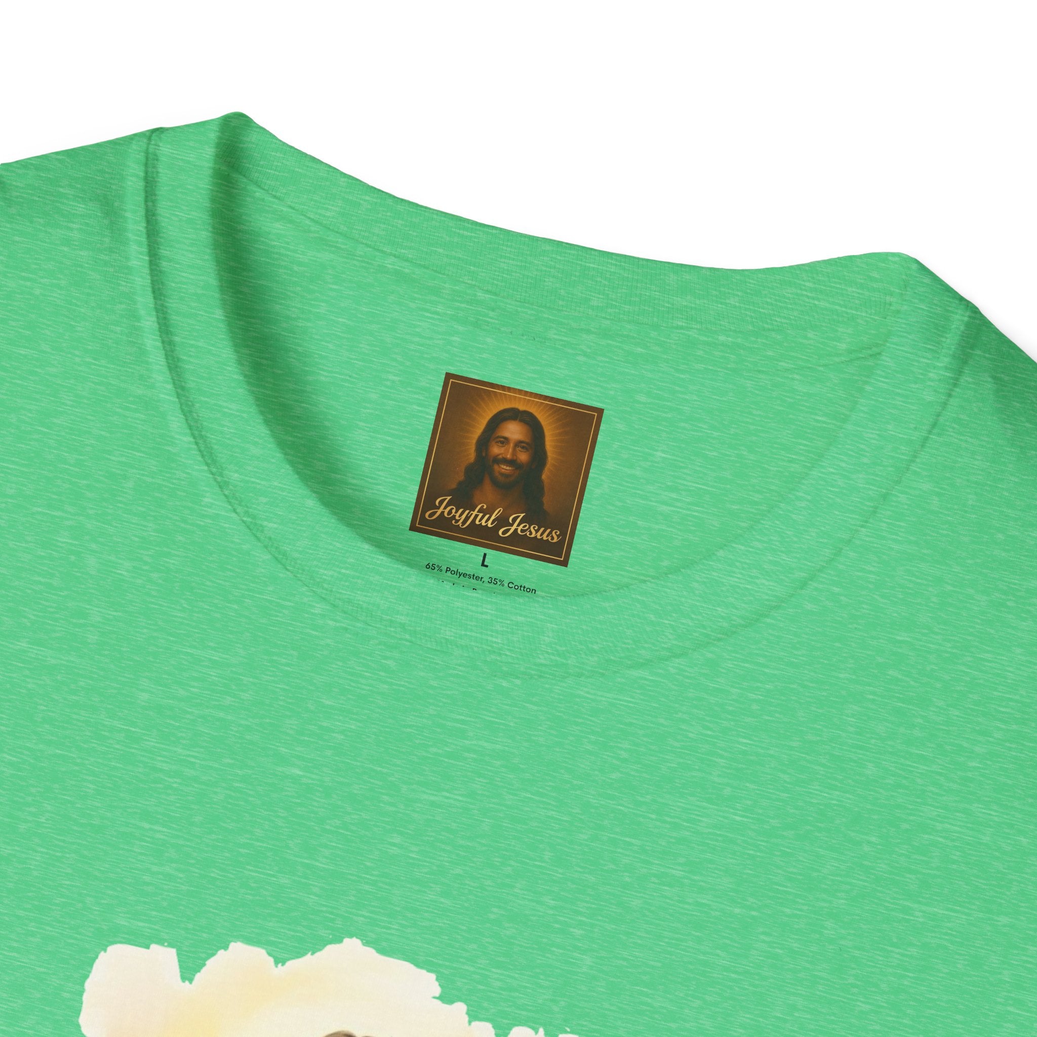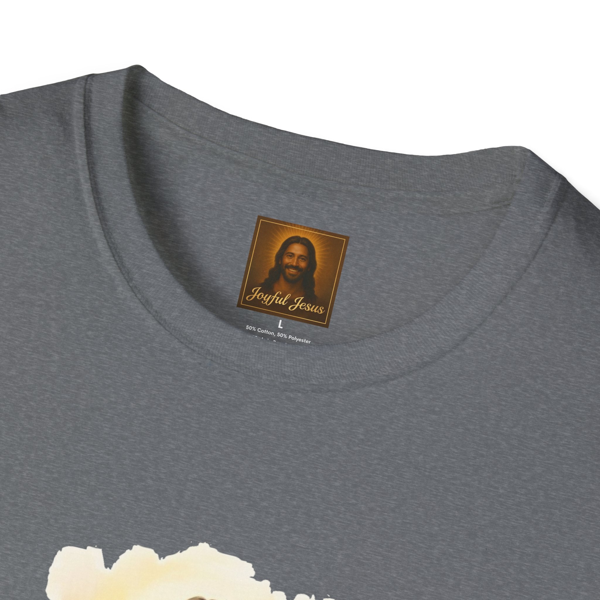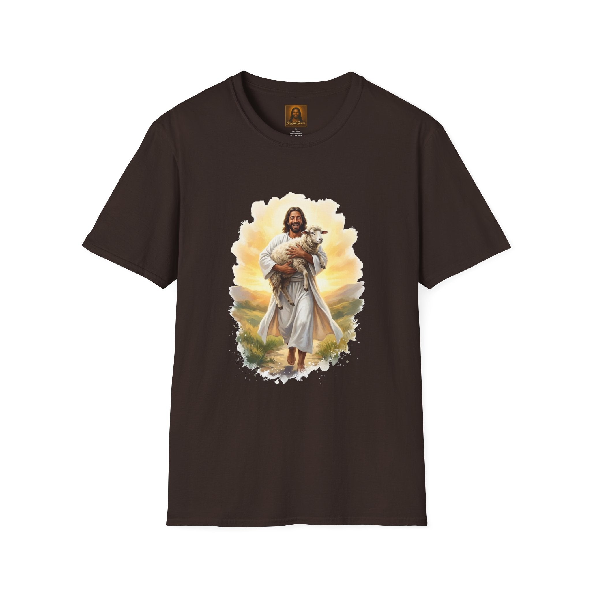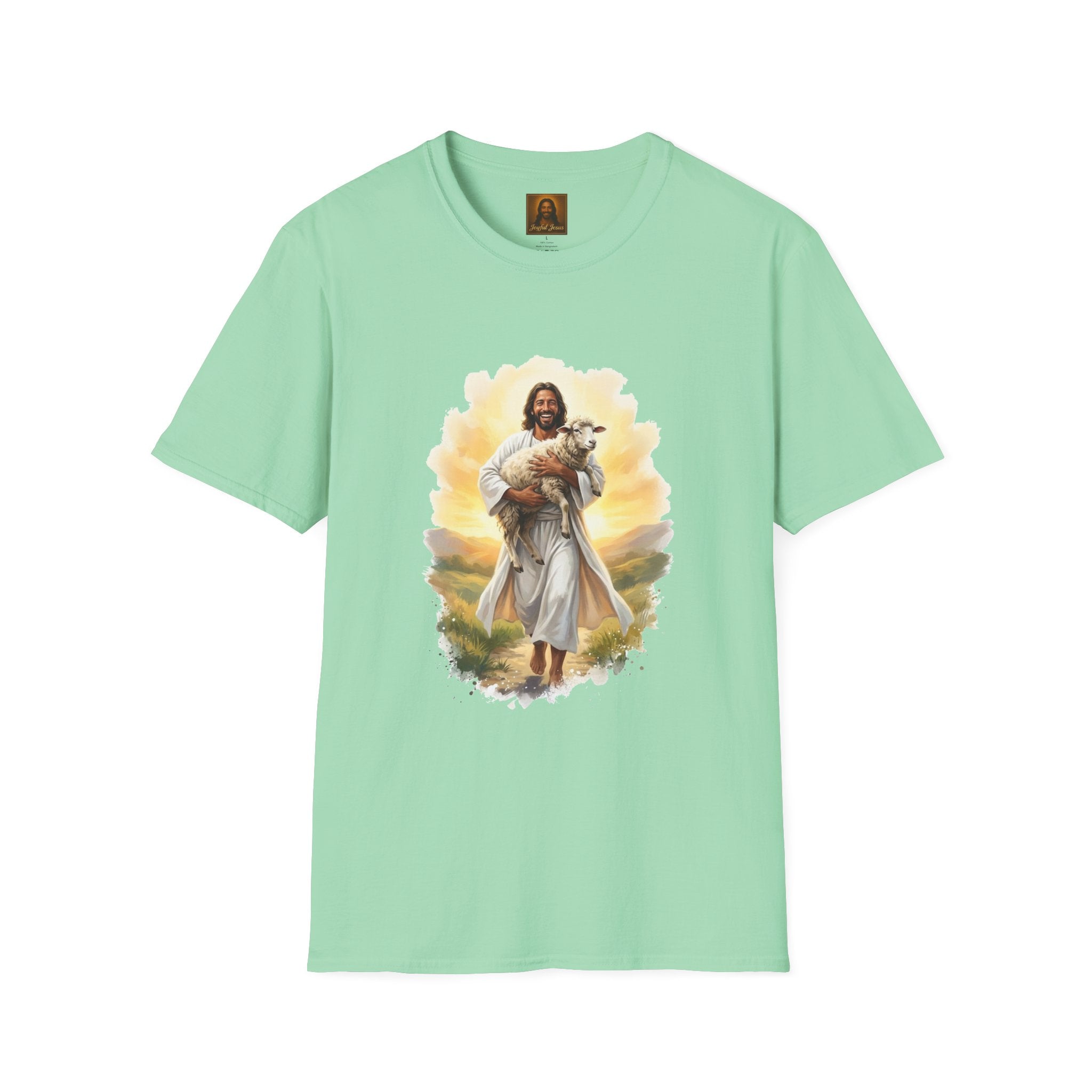 The Lost Sheep — Jesus laughing with pure joy as he carries his found lamb home. Wearable parable art from Joyful Jesus. Joy is the Way. The Lost Sheep — Jesus beaming with pure joy as he cradles his found lamb, walking through golden-lit hills. This original Joyful Jesus artwork brings one of the most beloved parables to life — not with solemnity, but with the overwhelming happiness of finding what was lost. "What man of you, having a hundred sheep, if he has lost one of them, does not leave the ninety-nine and go after the one that is lost, until he finds it? And when he has found it, he lays it on his shoulders, rejoicing." — Luke 15:4-5 ABOUT THE DESIGN This warm, painterly artwork captures the moment of reunion — Jesus striding joyfully through rolling green hills at golden hour, cradling his sheep with the biggest smile you've ever seen. Brushstroke-edge framing on a black background makes the art pop on any shirt color. ABOUT JOYFUL JESUS We believe joy is the heart of Jesus' message. Every design celebrates faith through vibrant, art-forward imagery — never preachy, never political, just joy. Joy is the Way. PERFECT FOR - Easter Sunday and Resurrection celebrations - Anyone who loves the Good Shepherd parable - Sheep and farm animal lovers who also love Jesus - Gifts for pastors, youth leaders, and Bible study groups - Everyday faith wear that starts conversations PRODUCT DETAILS - Premium unisex t-shirt - Print-on-demand (made just for you) - Multiple sizes available (see size chart) - Machine wash cold, tumble dry low - Printed with high-quality, durable inks SHIPPING Free shipping included! Orders are produced and shipped within 2-7 business days. ORDER EARLY FOR EASTER Easter is April 5, 2026. Order by mid-March to ensure delivery in time! Have questions? Message us anytime — we respond quickly! Product features - 100% ring-spun cotton (lightweight 153 g/m²) for soft, year-round comfort - Tubular knit construction with no side seams for cleaner drape and reduced fabric waste - Ribbed knit collar and shoulder tape to maintain shape and prevent stretching - DTG and DTF print methods used for vibrant, durable artwork (sleeve/neck labels printed by DTF) - Pearlized tear-away label, Oeko-Tex certification, EU 2-year warranty Care instructions - Do not dryclean - Do not bleach - Tumble dry: low heat - Iron, steam or dry: low heat - Machine wash: cold (max 30C or 90F), with similar colors