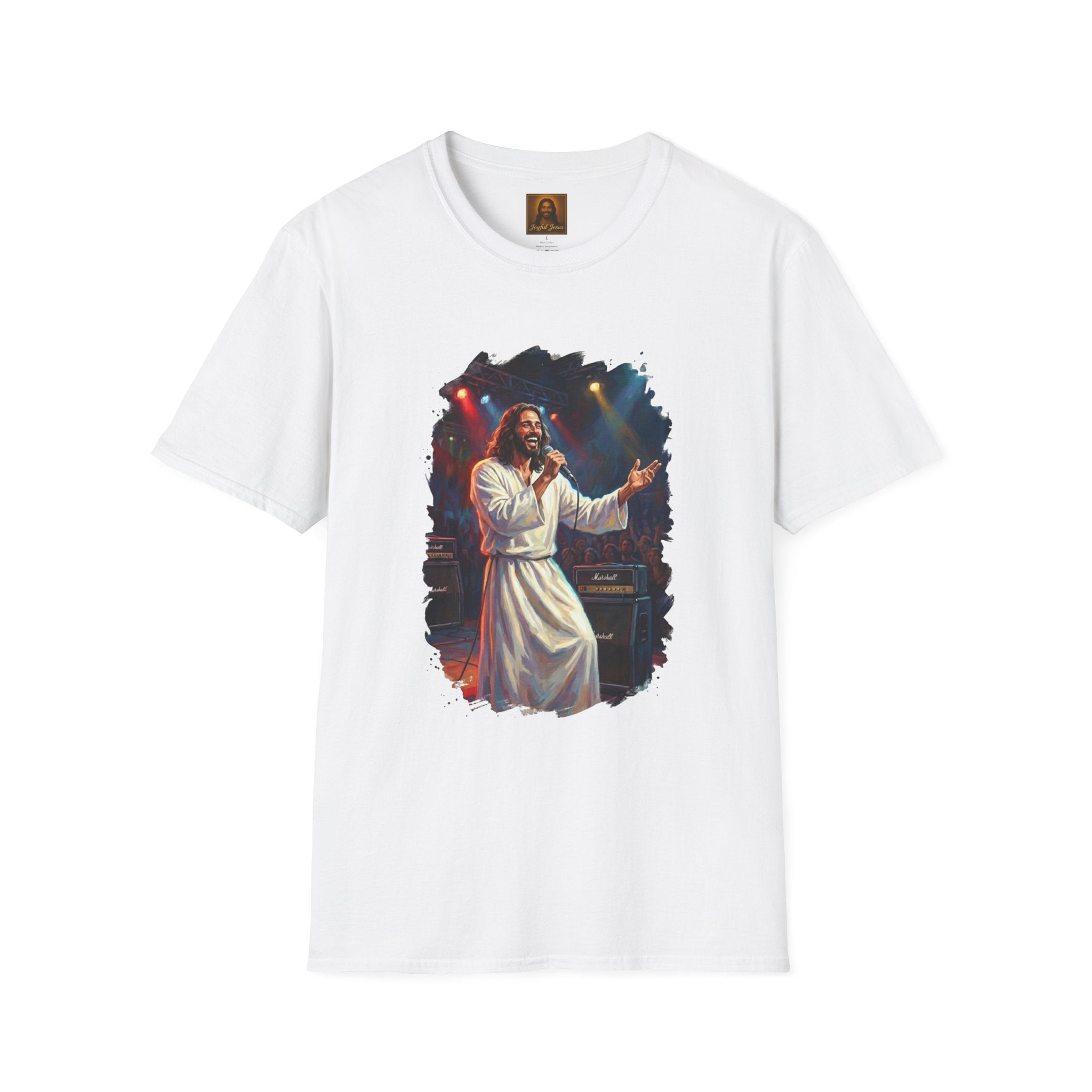Christian T Shirt | Jesus Playing Guitar at Concert | Joyful Jesus Faith Shirt