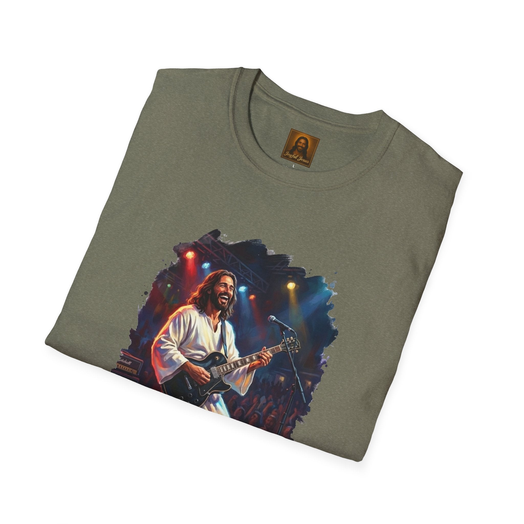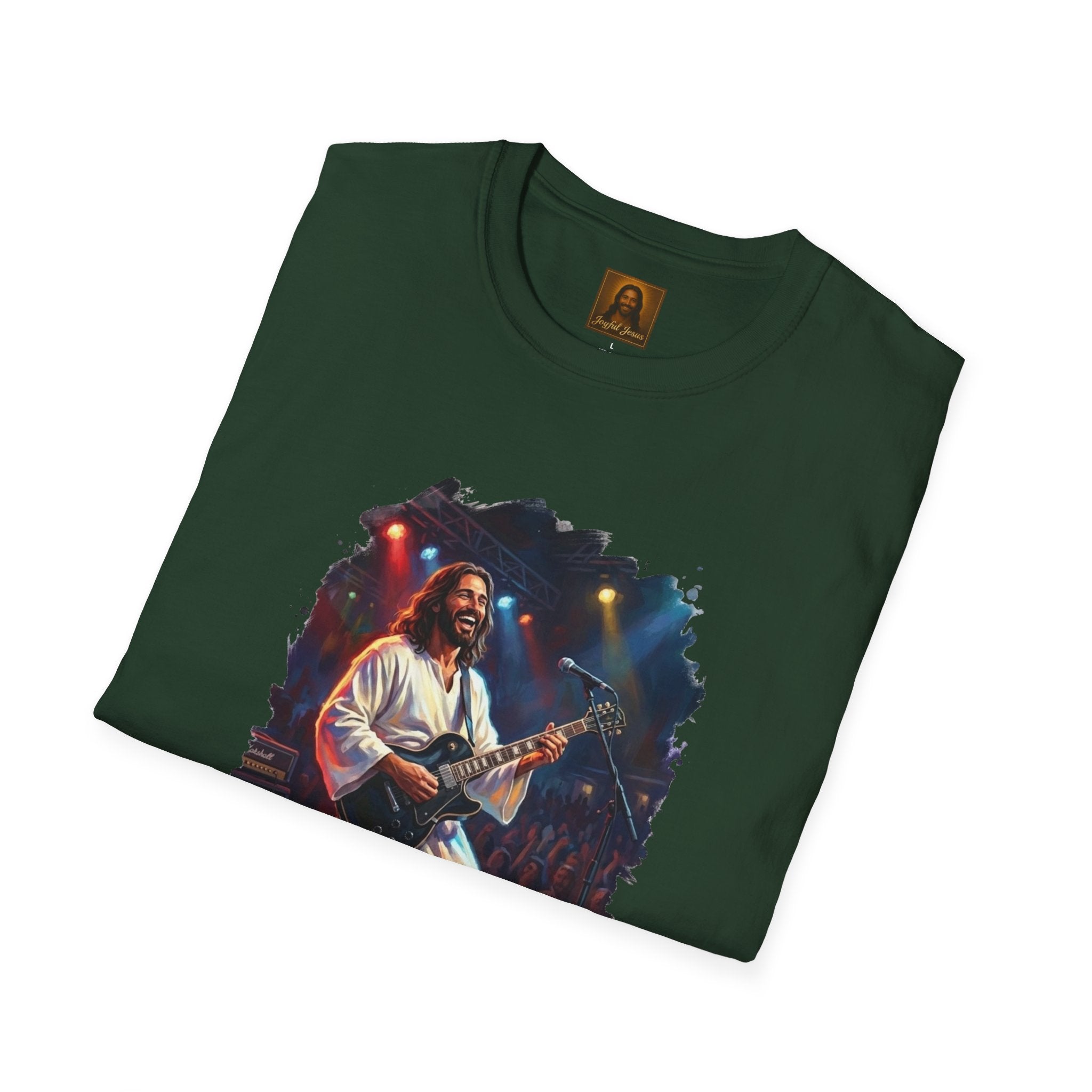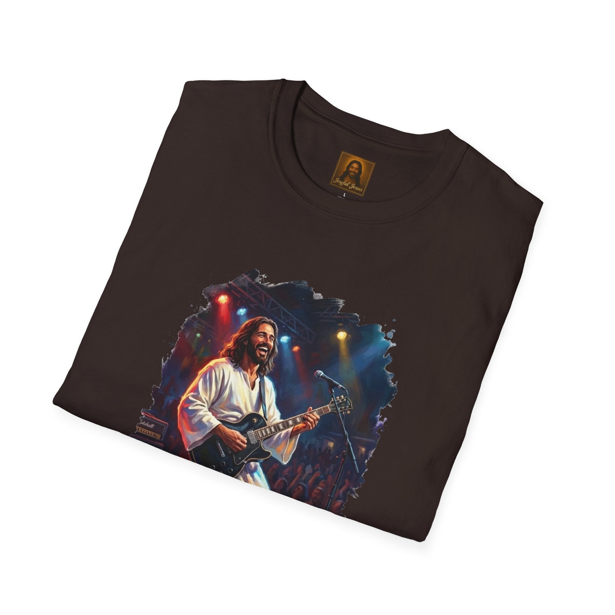Christian T Shirt | Jesus Playing Guitar at Concert | Joyful Jesus Faith Shirt