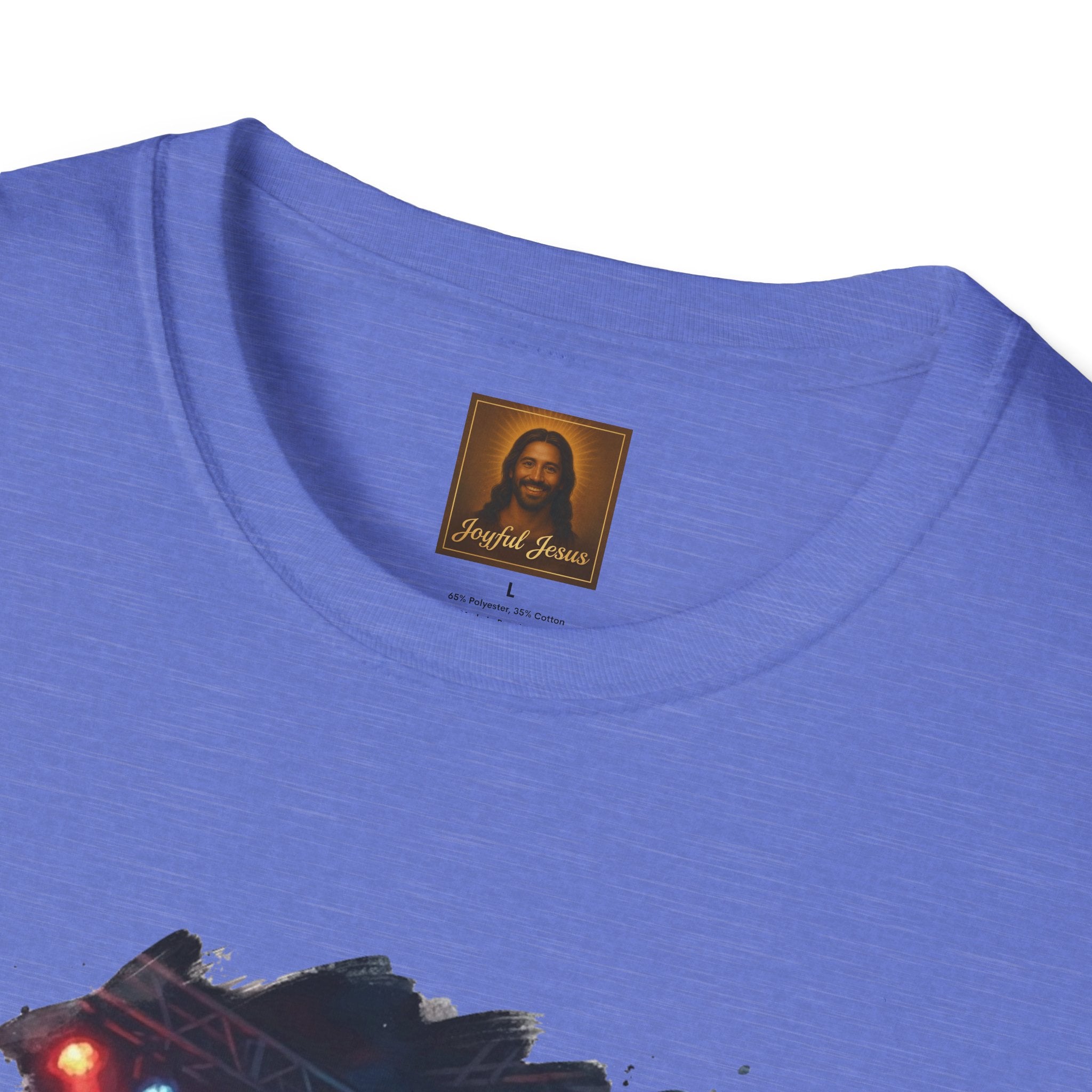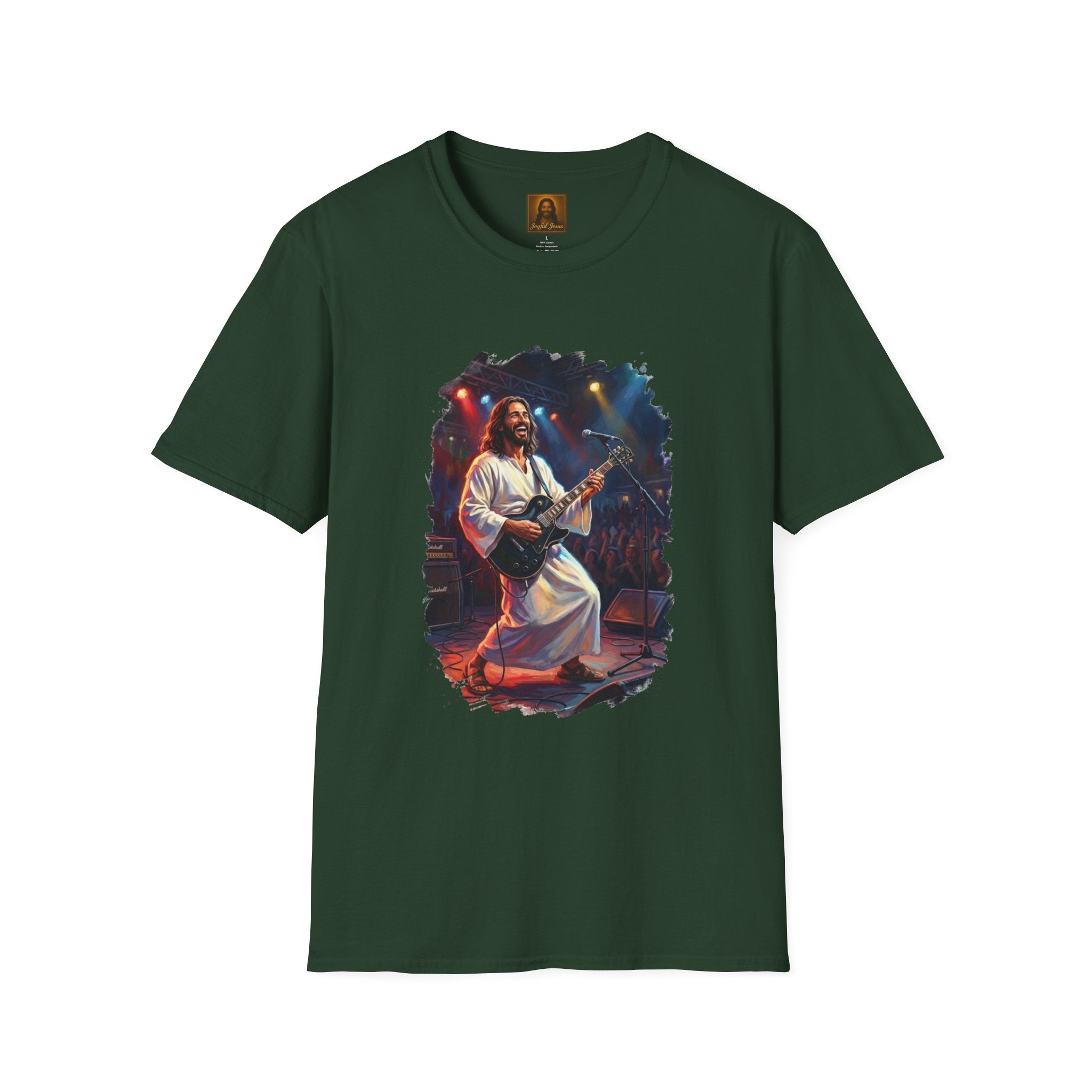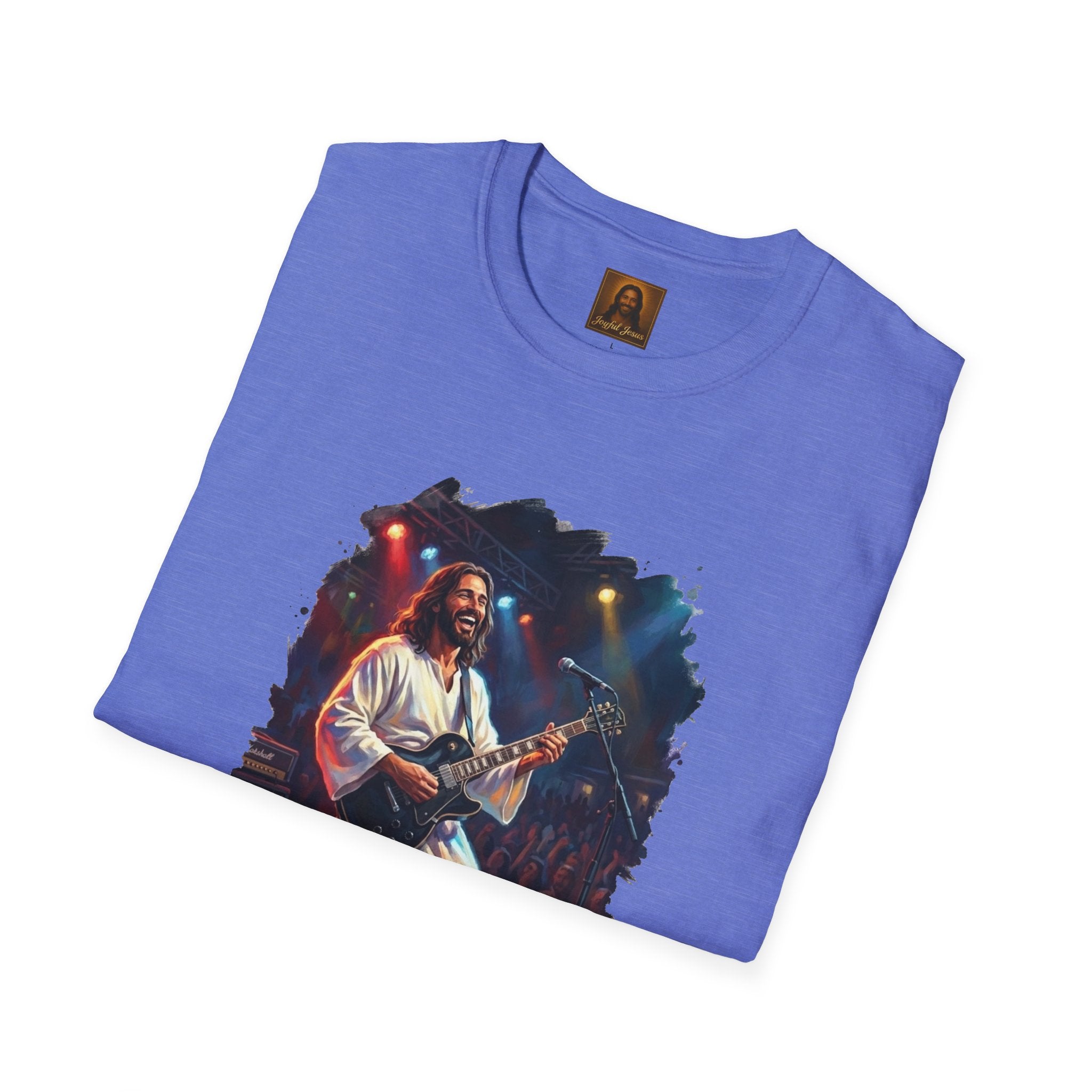 Christian T Shirt | Jesus Playing Guitar at Concert | Joyful Jesus Faith Shirt