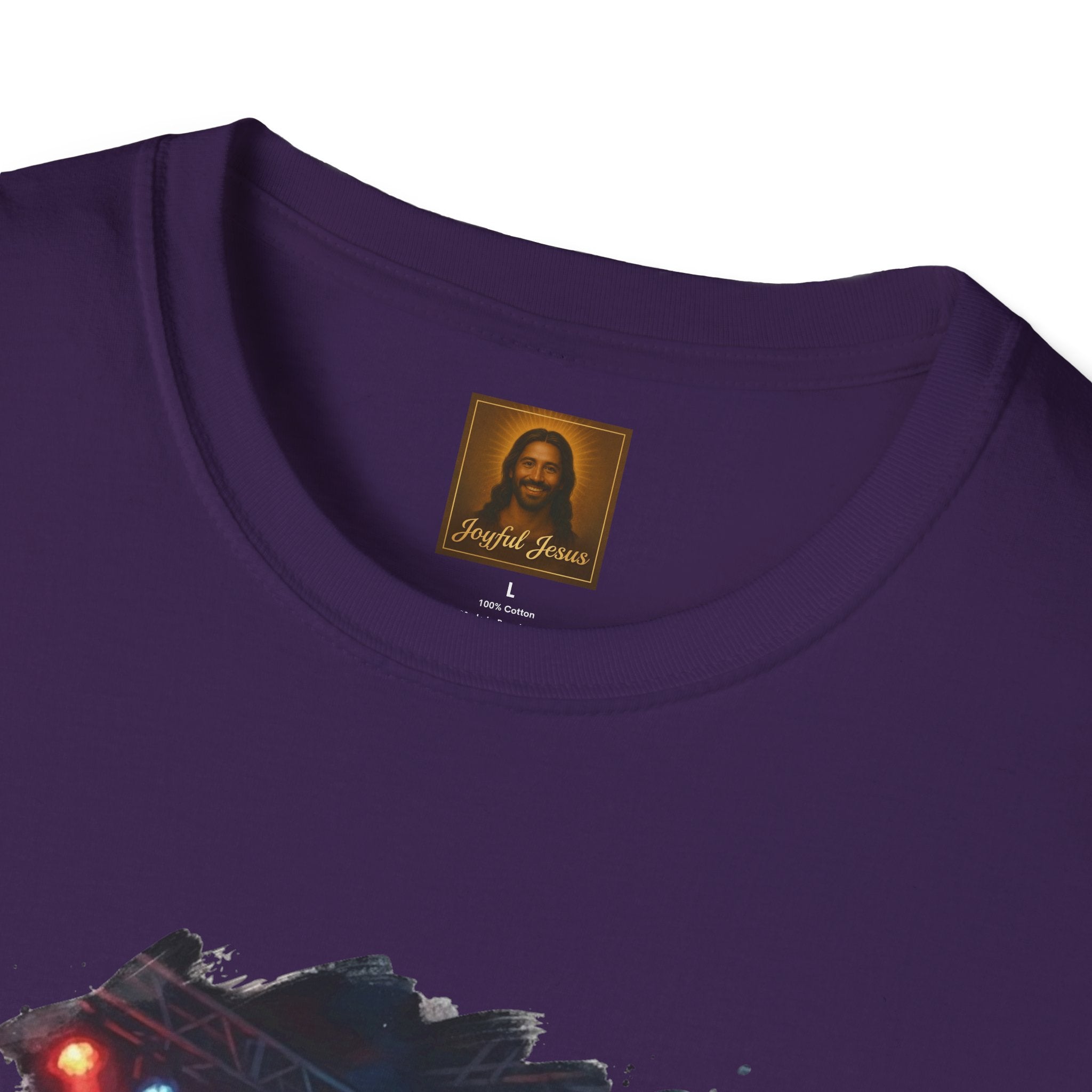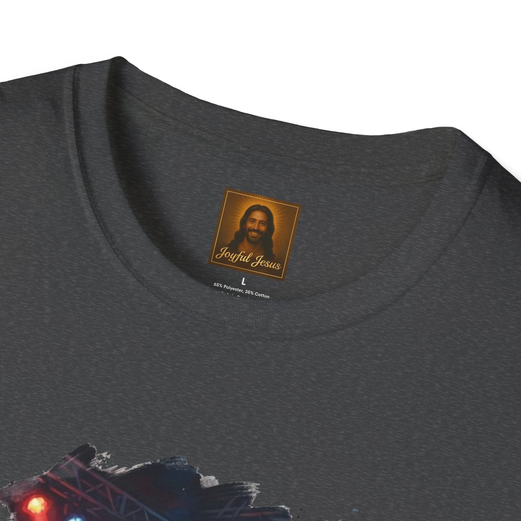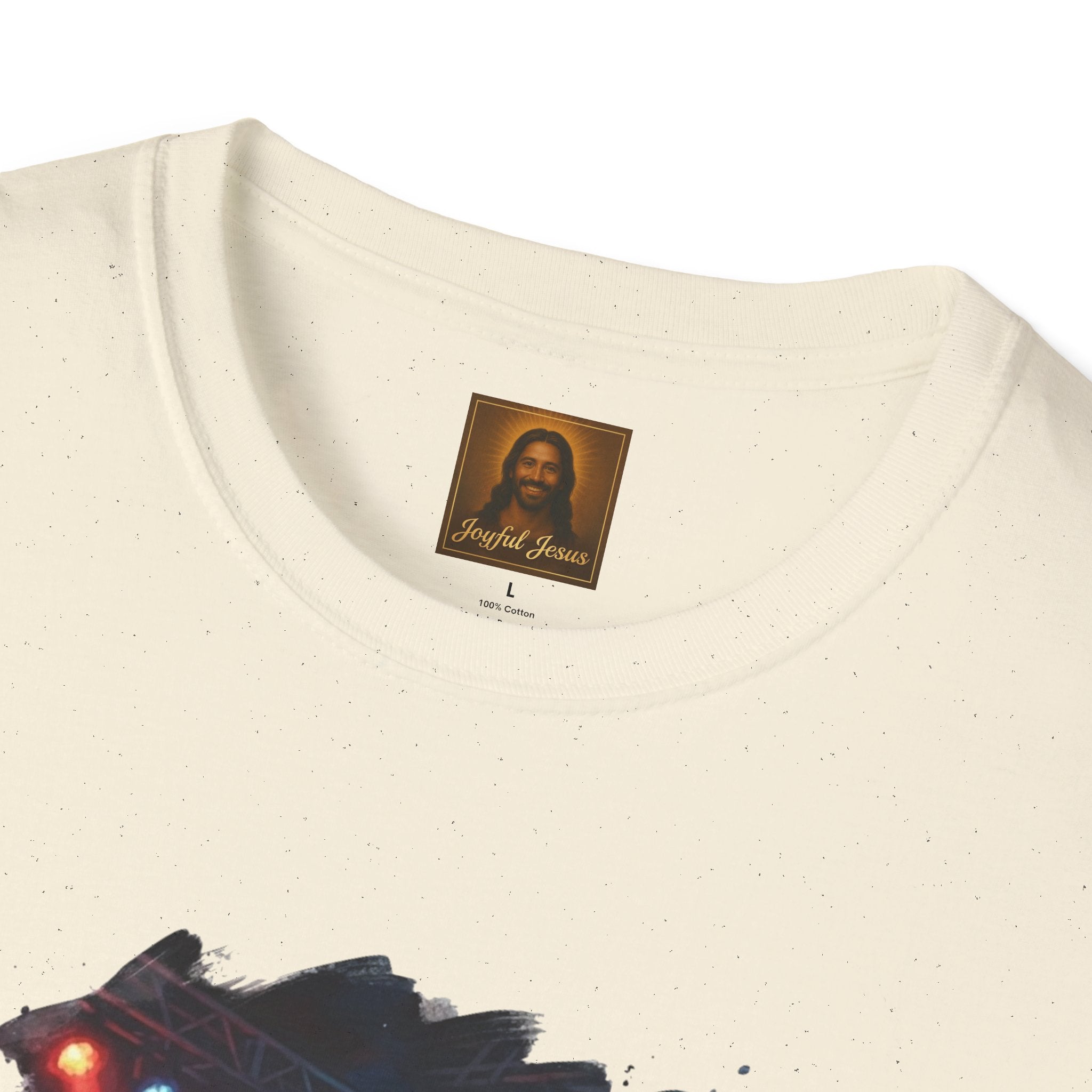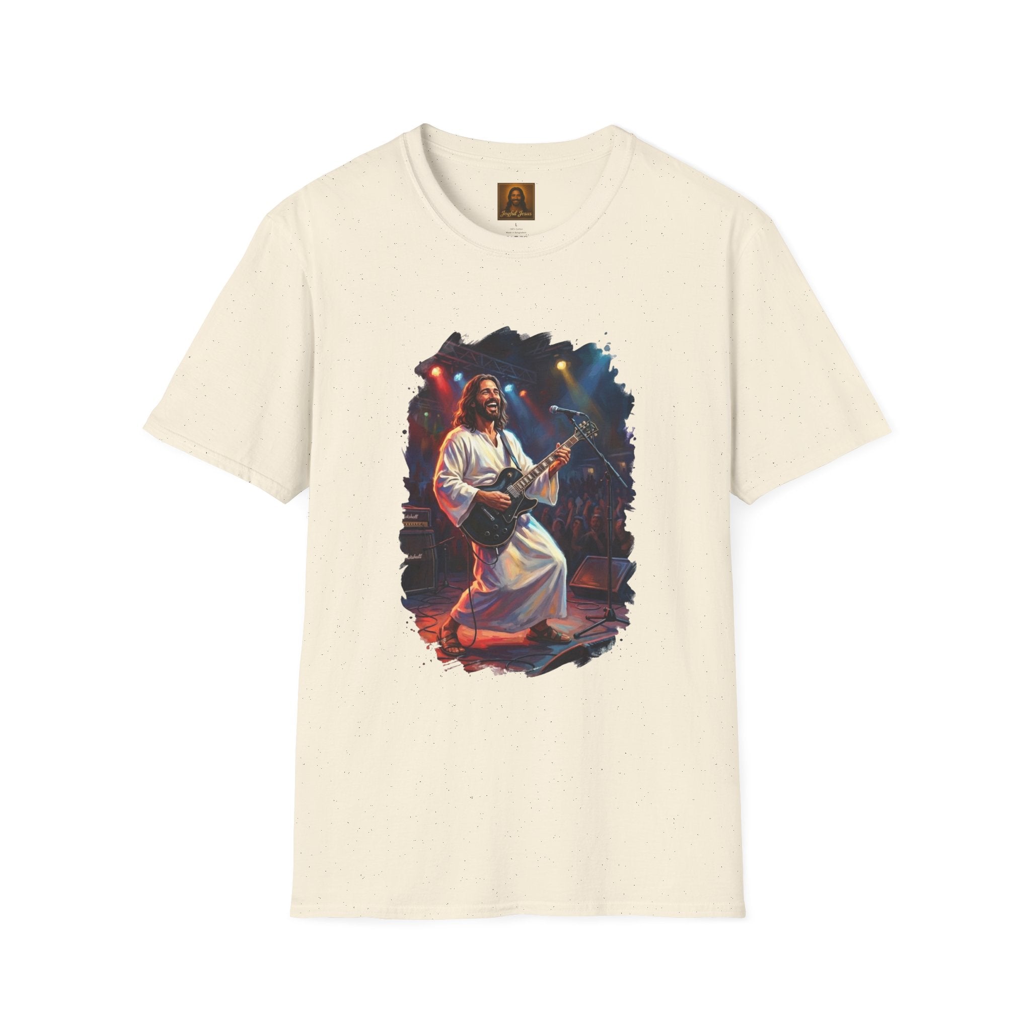 Jesus on stage at a sold out show playing guitar. Stage lights blazing. Amps behind him. Crowdpacked in. Inspired and fully in it. A Christian t shirt for people who know joy has a sound.Printed on premium soft cotton. True to size. This God shirt is built to be worn, not shelved.Joyful Jesus Christian streetwear that plays loud.Designed by Joyful Jesus. Joy has a sound.Product features- 100% ring-spun cotton lightweight fabric (4.5 oz/yd²) for year-round comfort- Tubular knit without side seams for a clean look and reduced fabric waste- Ribbed collar and shoulder tape to maintain shape and prevent stretching- Pearlized tear-away label and ethically sourced materials with Oeko-Tex certification- DTG front print with optional DTF sleeve and inner neck details; EU 2-year warrantyCare instructions- Do not dryclean- Do not bleach- Tumble dry: low heat- Iron, steam or dry: low heat- Machine wash: cold (max 30C or 90F), with similar colors